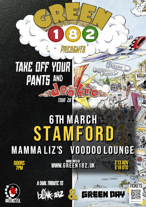 GREEN 182 brings you a full-throttle night of chaos, energy, and nostalgia, performing two massive sets packed with all your favourite hits from Blink-182 and Green Day. One set celebrating Blink-182’s Take Off Your Pants and Jacket and another set celebrating Green Day’s Dookie, two albums that defined a generation!
