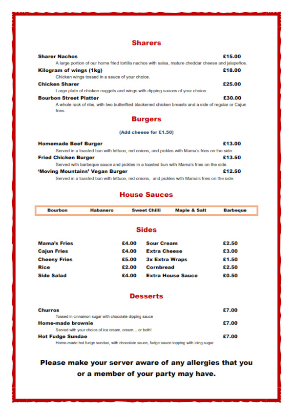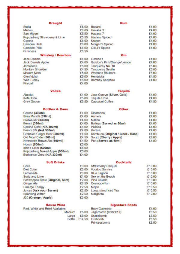 We serve food from midday each day till late, catering to vegan, vegetarian & meat lovers alike. From sizzling fajitas to ribs, burgers or surf & turf gumbo there is something to tickle every tastebud, whether a meal for two or group and party dining.